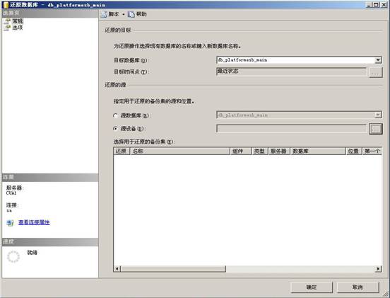 8.點(diǎn)擊【任務(wù)】-【還原】-【數(shù)據(jù)庫】,出現(xiàn)還原數(shù)據(jù)庫的對(duì)話框,如下圖所示: