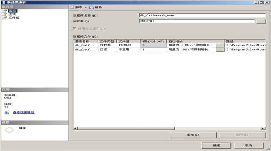 6.輸入數(shù)據(jù)庫的名稱,例如db_platformesb_main,然后點(diǎn)擊【確定】按鈕,即可完成數(shù)據(jù)庫的添加,如下圖所示: