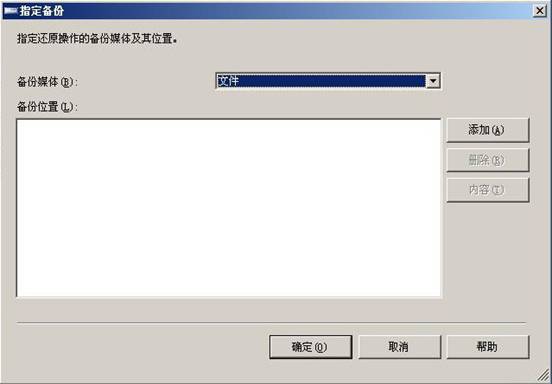 10.選擇“文件”備份媒體,點(diǎn)擊【添加】按鈕,出現(xiàn)定位備份文件的對話框,如下圖所示: