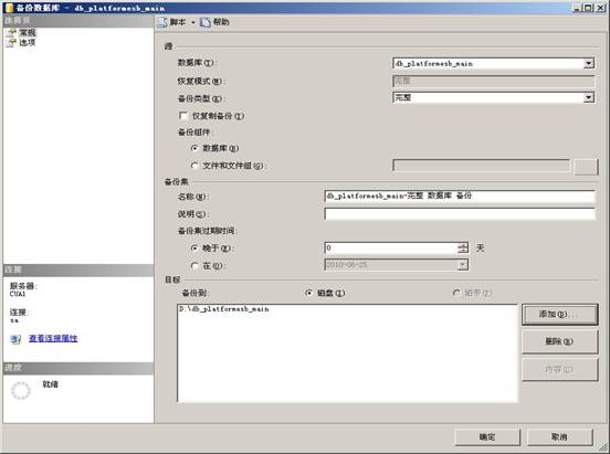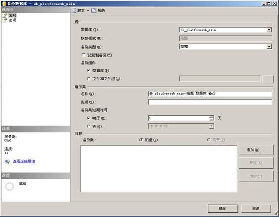 2.出現(xiàn)備份數(shù)據(jù)庫的對話框界面,如下圖所示: