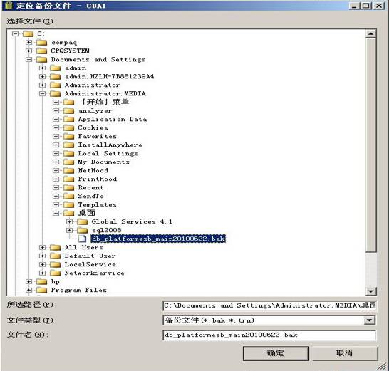 11.選擇需要還原的原備份文件,確認(rèn)無誤后,點(diǎn)擊【確定】按鈕,備份文件會添加到備份位置的表框內(nèi),如下圖所示: