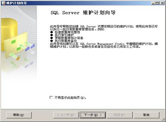 2.點(diǎn)擊【維護(hù)計(jì)劃向?qū)А,出現(xiàn)維護(hù)計(jì)劃向?qū)У膶υ捒,如下圖所示: