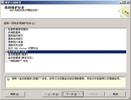 6.點擊【下一步】按鈕,出現(xiàn)選擇維護(hù)任務(wù)的對話框,如下圖所示: