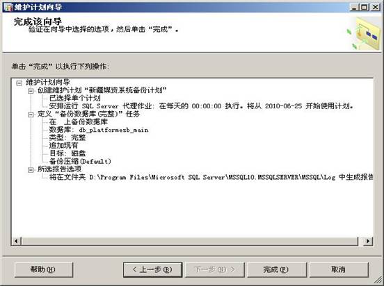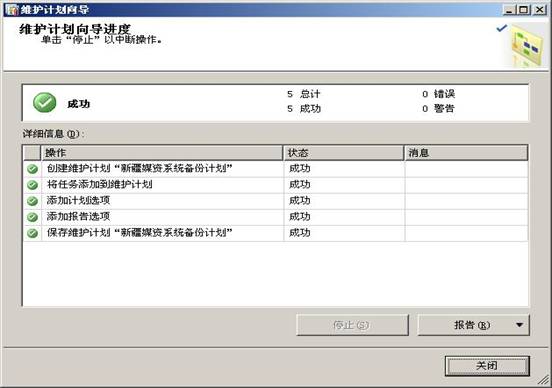 15.點擊【完成】按鈕,出現(xiàn)維護(hù)計劃向?qū)нM(jìn)度的對話框,如下圖所示: