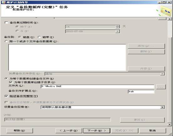 13.勾選“驗證備份完整性”,確認(rèn)無誤后,點擊【下一步】,出現(xiàn)選擇報告選項的對話框,如下圖所示: