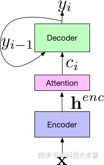 Sequence-to-Sequence 方法原來主要應(yīng)用于機器翻譯領(lǐng)域。2017 年,Google 將其應(yīng)用于語音識別領(lǐng)域,取得了非常好的效果,將詞錯誤率降低至5.6%。如下圖所示,Google 提出新系統(tǒng)的框架由三個部分組成:Encoder 編碼器組件,它和標準的聲學(xué)模型相似,輸入的是語音信號的時頻特征;經(jīng)過一系列神經(jīng)網(wǎng)絡(luò),映射成高級特征 henc,然后傳遞給 Attention 組件,其使用 henc 特征學(xué)習(xí)輸入 x 和預(yù)測子單元之間的對齊方式,子單元可以是一個音素或一個字。最后,attention 模塊的輸出傳遞給 Decoder,生成一系列假設(shè)詞的概率分布,類似于傳統(tǒng)的語言模型。